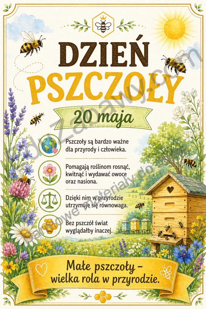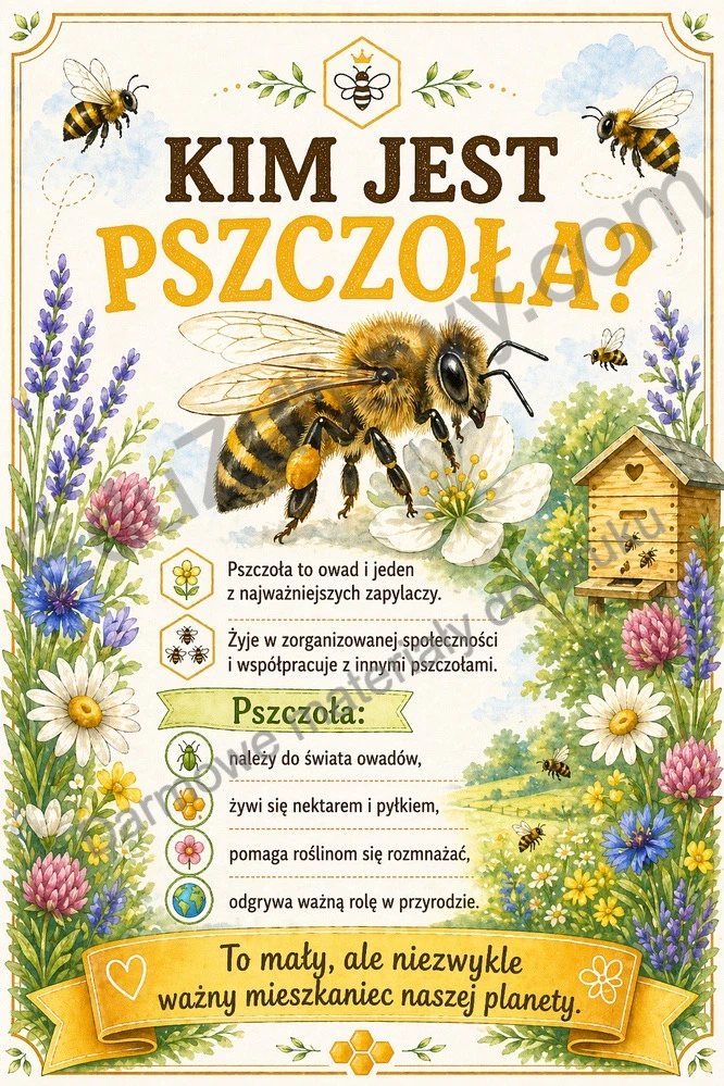 To darmowy PDF do druku, idealny na Dzień Pszczoły, lekcje przyrody, projekty ekologiczne i szkolne gazetki tematyczne.