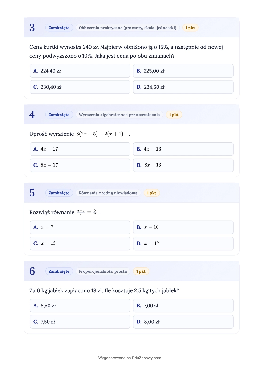 - Tworzy pełny próbny arkusz egzaminacyjny