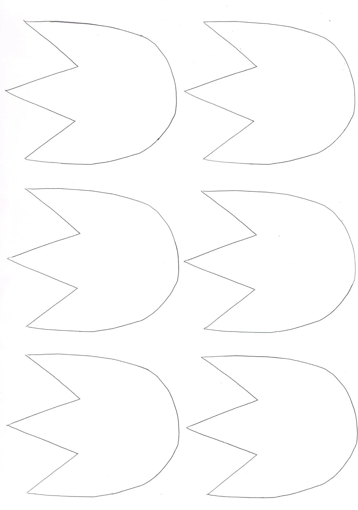1. Narysuj lub wydrukuj szablon tulipana na kolorowym papierze. Potrzebne będzie 6 takich samych kształtów.