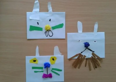 – Po zakończeniu dekorowania, dzieci mogą trzymać swoje zajączki i pokazać je na zdjęciu lub wyeksponować na ścianie.