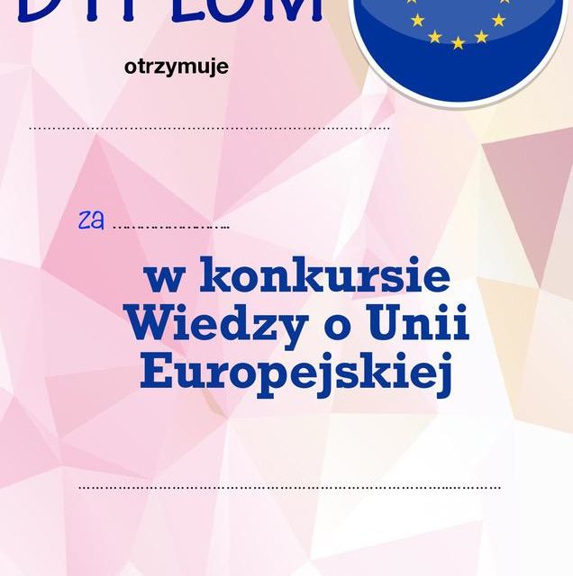 Kolejny pakiet ze ślicznymi dyplomami do druku o Europie i Unii Europejskiej. W Twojej szkole organizują konkurs wiedzy o Unii Europejskiej, albo za zajęcie 1, 2 i 3 miejsca. Możesz skorzystać z naszego quizu o Unii, albo wymyśleć pytania samodzielnie. 10 uroczych szablonów z dyplomami do druku dla dzieci. To miły akcent na zakończenie zmagań konkursowych. Dyplomy z flagą Unii Europejskiej.
