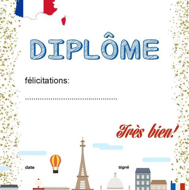 Przygotowaliśmy specjalny dyplom, by uhonorować uczniów za ich osiągnięcia w nauce języka francuskiego. Ten elegancko zaprojektowany dyplom zawiera elementy nawiązujące do francuskiej kultury i dziedzictwa, takie jak Wieża Eiffla, winnice, książki autorstwa słynnych francuskich pisarzy czy motywy związane z francuskim kinem i sztuką. Dzięki temu, dyplom nie tylko wyróżnia uczniów, ale również inspiruje ich do dalszego poznawania języka i kultury francuskojęzycznej.