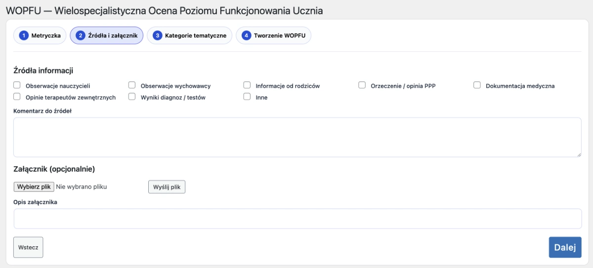 Opcjonalnie możesz dodać załącznik (np. opinię PPP) oraz opisać jego zawartość – wszystko po to, by dokument był pełny i rzetelny.