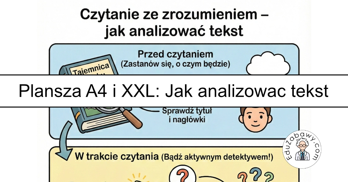 Plansza dydaktyczna: Czytanie ze zrozumieniem – jak analizować tekst